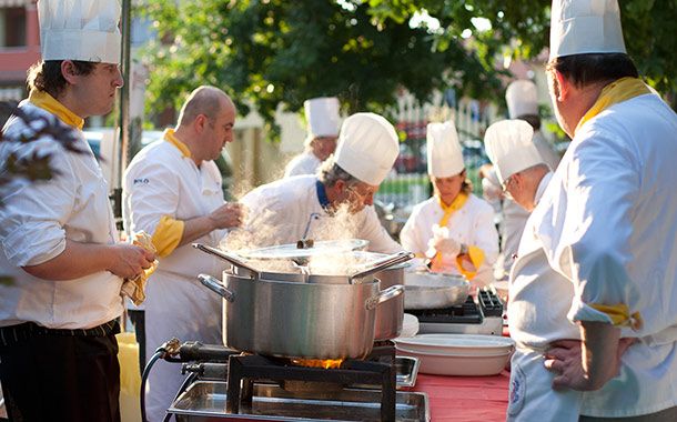 Sfida amichevole ai fornelli, in una suggestiva cornice estiva in giardino, dove vengono allestite delle cucine esterne; I cuochi, delegati uno per ognuna delle 7 Province, si sfidano con un tema specifico (variabile ogni anno e decretato dall'Accademia Italiana della cucina).